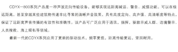 ? ? ? ▼動亂、暴亂、騷亂現(xiàn)場,暴徒喪心病狂,受蠱惑的群眾也可能情緒失控,警察法規(guī)說教不可能動搖其心理防線,動槍動棒恐傷無辜,釋放催淚瓦斯又有失人道,而“聲霸”精準瞄準其骨干分子,高分貝施壓,使起聽覺神經(jīng)無力招架,被迫撤離,既能有效控制局面,平息大亂,又不致命、致傷、致殘,彰顯文明執(zhí)法。